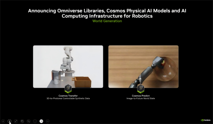 在物理AI的世界生成环节,NVIDIA在本次大会上也宣布了对用于世界生成的Cosmos世界基础模型进行两项更新:
